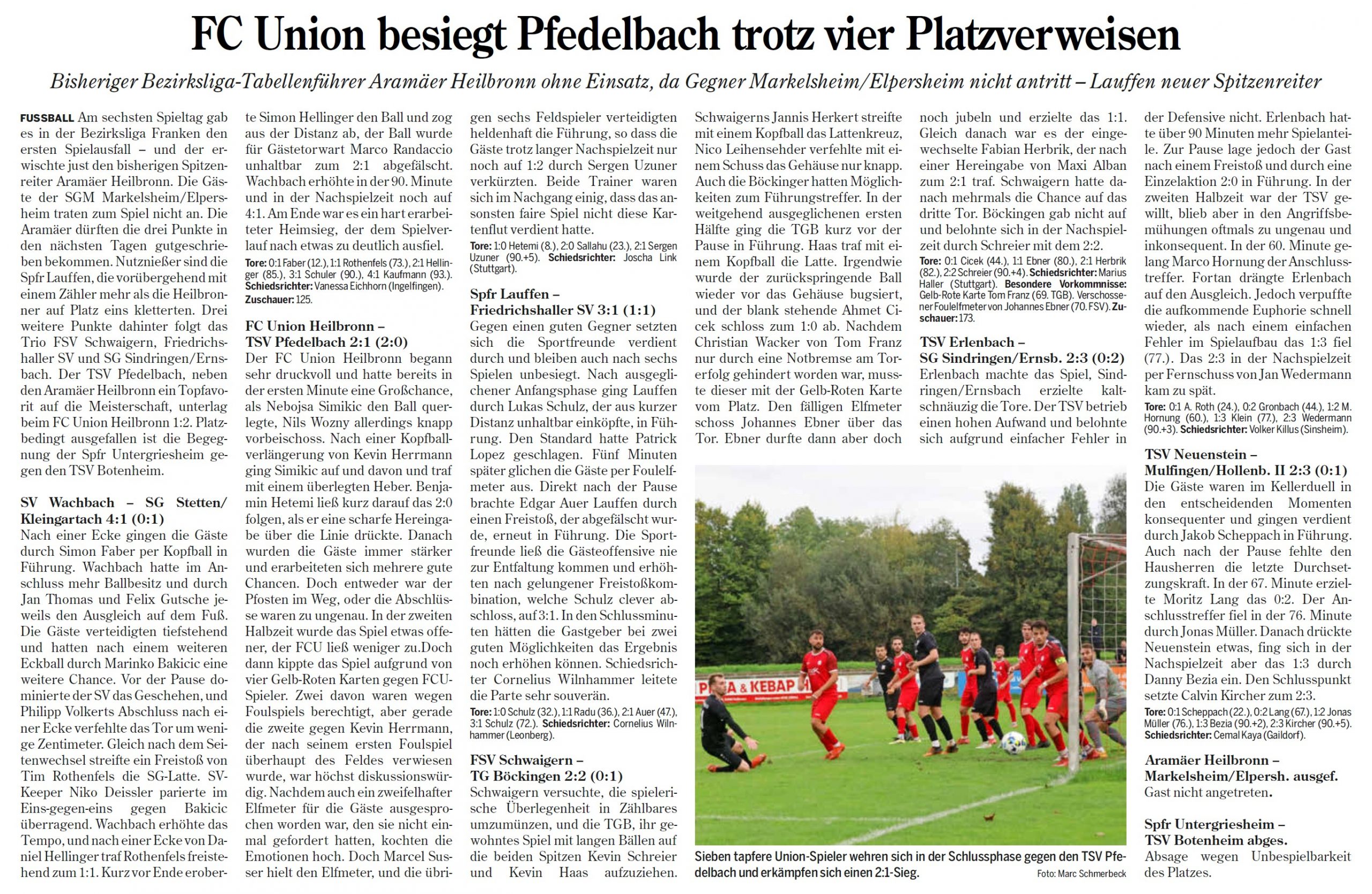 Der TSV Pfedelbach verlor ein vogelwildes Spiel am Sonntag, den 28. September 2025 mit 1:2 beim FC Union Heilbronn.