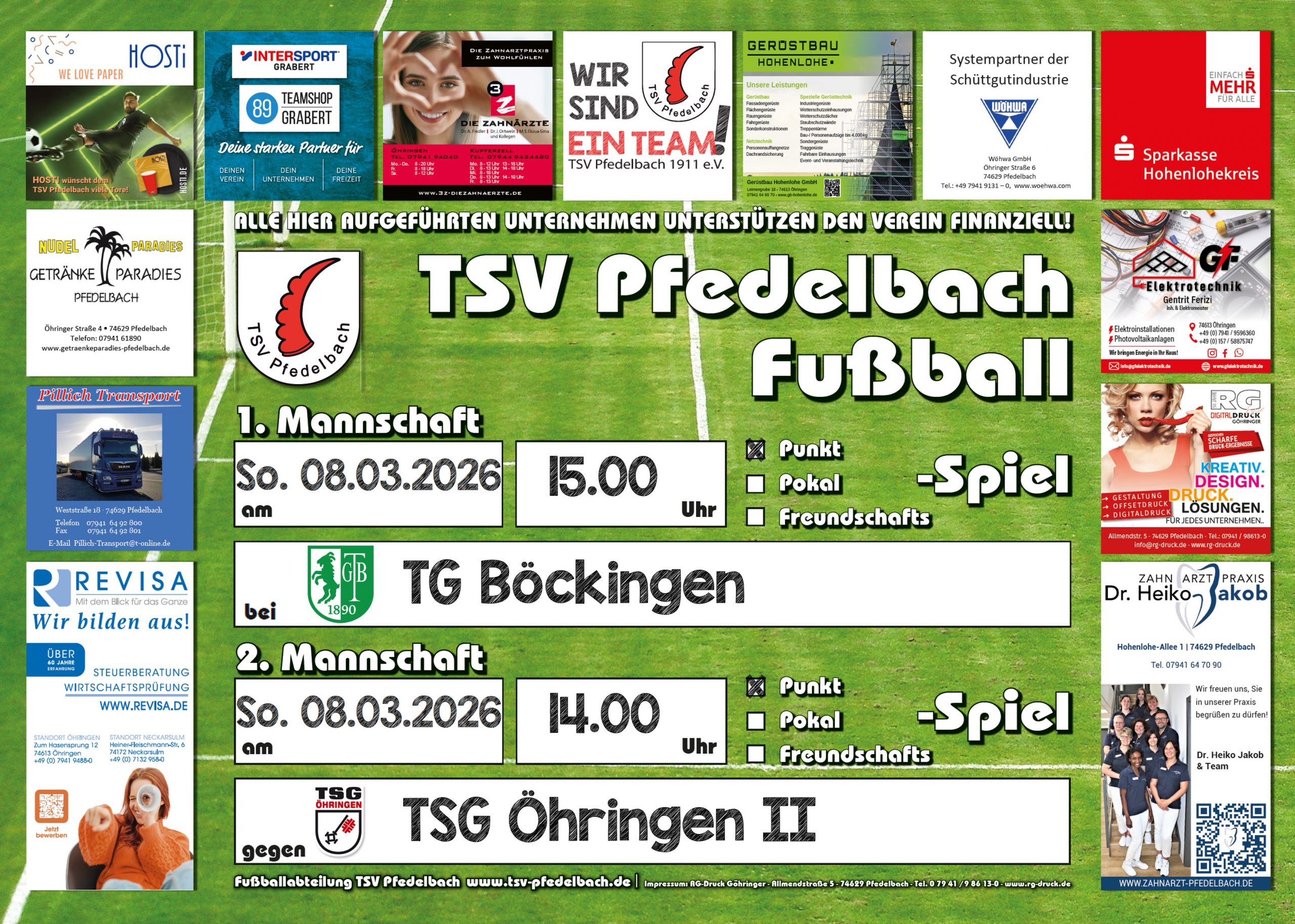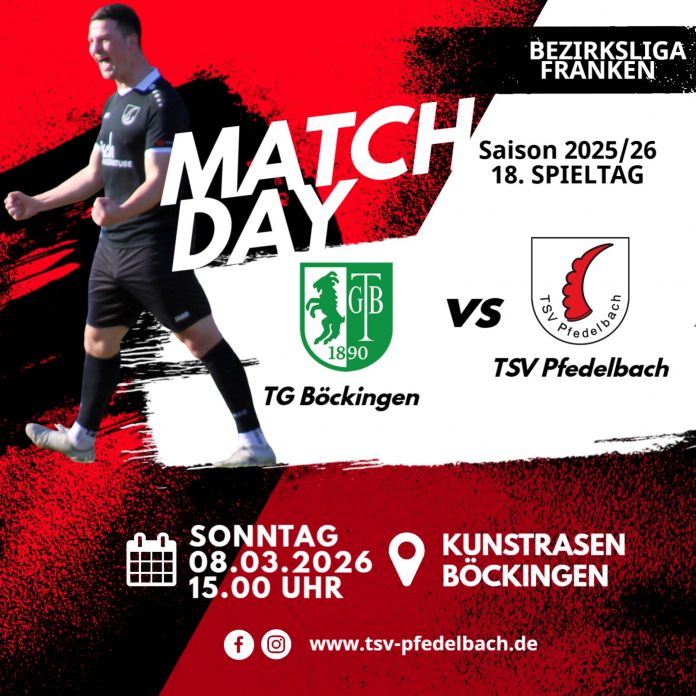 Am kommenden Sonntag, den 08.03.2026, ist unser TSV Pfedelbach in der Bezirksliga Franken bei der TG Böckingen gefordert. Anpfiff der Partie ist um 15:00 Uhr.