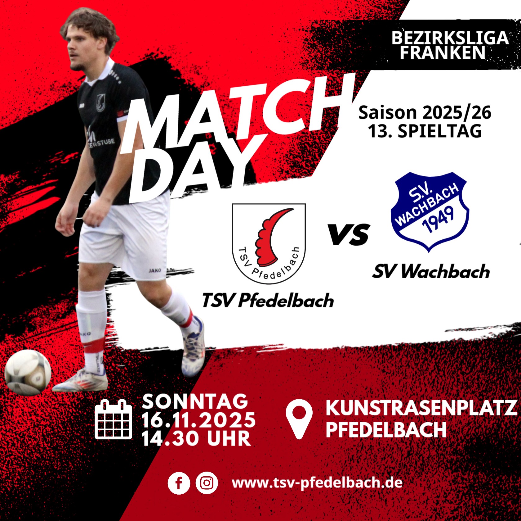 Am Sonntag, den 16. November 2025 um 14.30 Uhr spielt unsere 1. Mannschaft am 13. Spieltag der Bezirksliga zu Hause auf dem Kunstrasenplatz gegen den SV Wachbach.