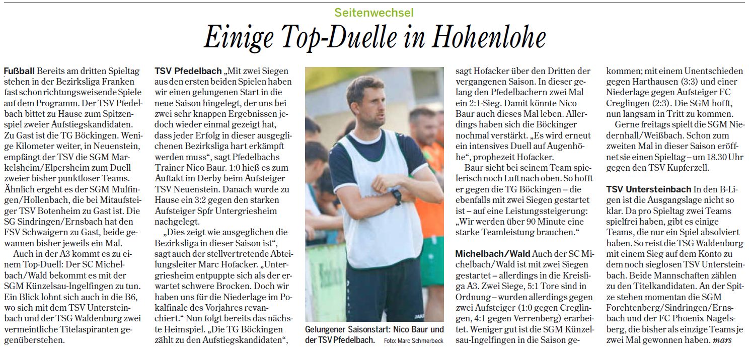 Vorbericht aus der Hohenloher Zeitung vom 05.09.2025: