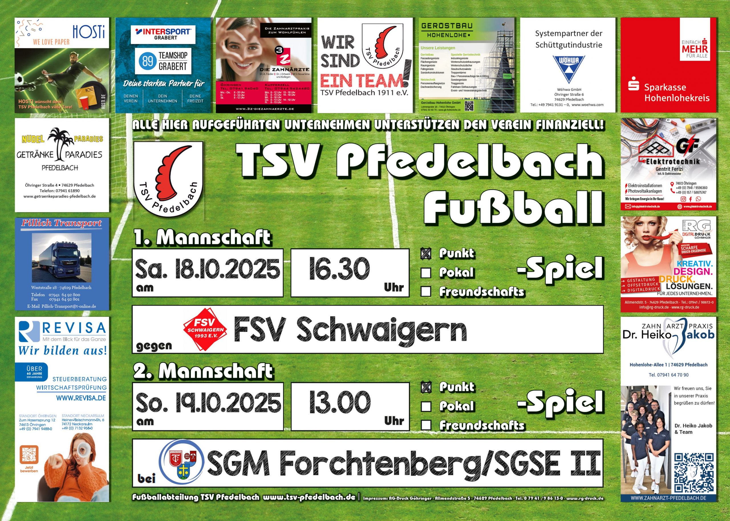 Ich wünsche unseren Teams zuhause und auf fremden Plätzen heute viel Erfolg und hoffe auf Pfedelbacher Siege!