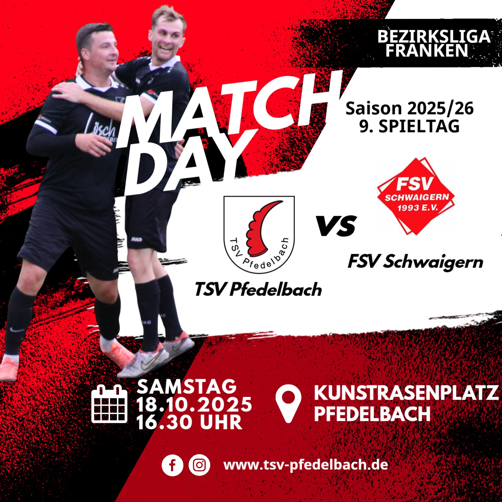 Am Samstag, den 18. Oktober 2025 um 16.30 Uhr spielt unsere 1. Mannschaft am 9. Spieltag der Bezirksliga zu Hause auf dem Kunstrasenplatz gegen den FSV Schwaigern.