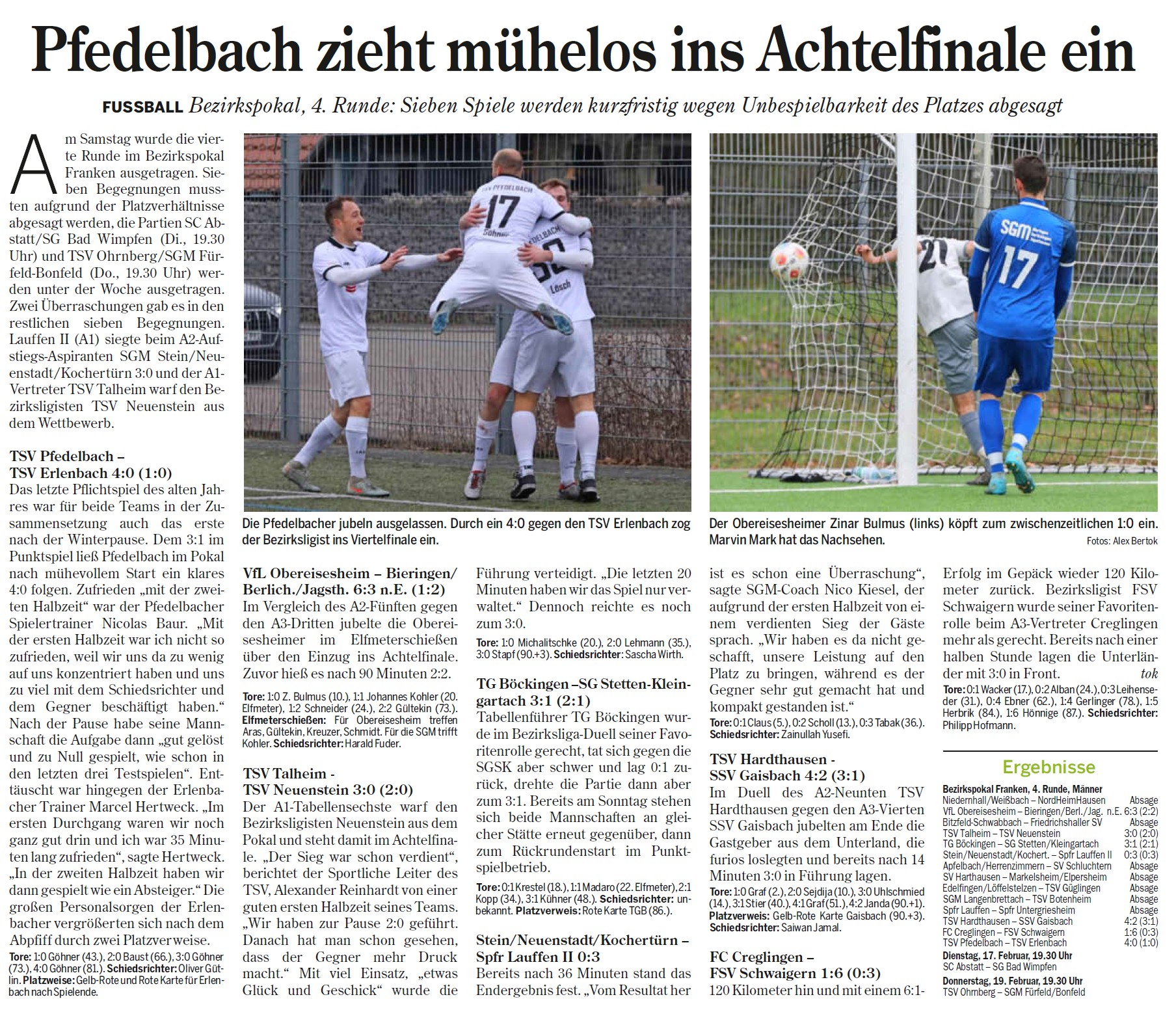Ein Spielbericht, die Bilder, Videos vom Spiel, die Ergebnisse von der 4. Pokalrunde sind online.