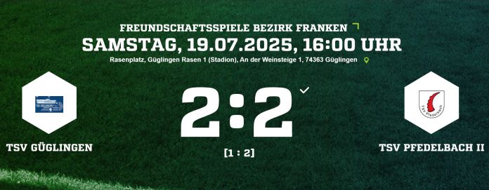 Unsere 2. Mannschaft spielte in ihrem ersten Testspiel am Samstag, den 19.07.2025 auswärts beim A-Ligisten TSV Güglingen 2:2 Unentschieden. Die Tore erzielten 2x Noah Ostheimer.