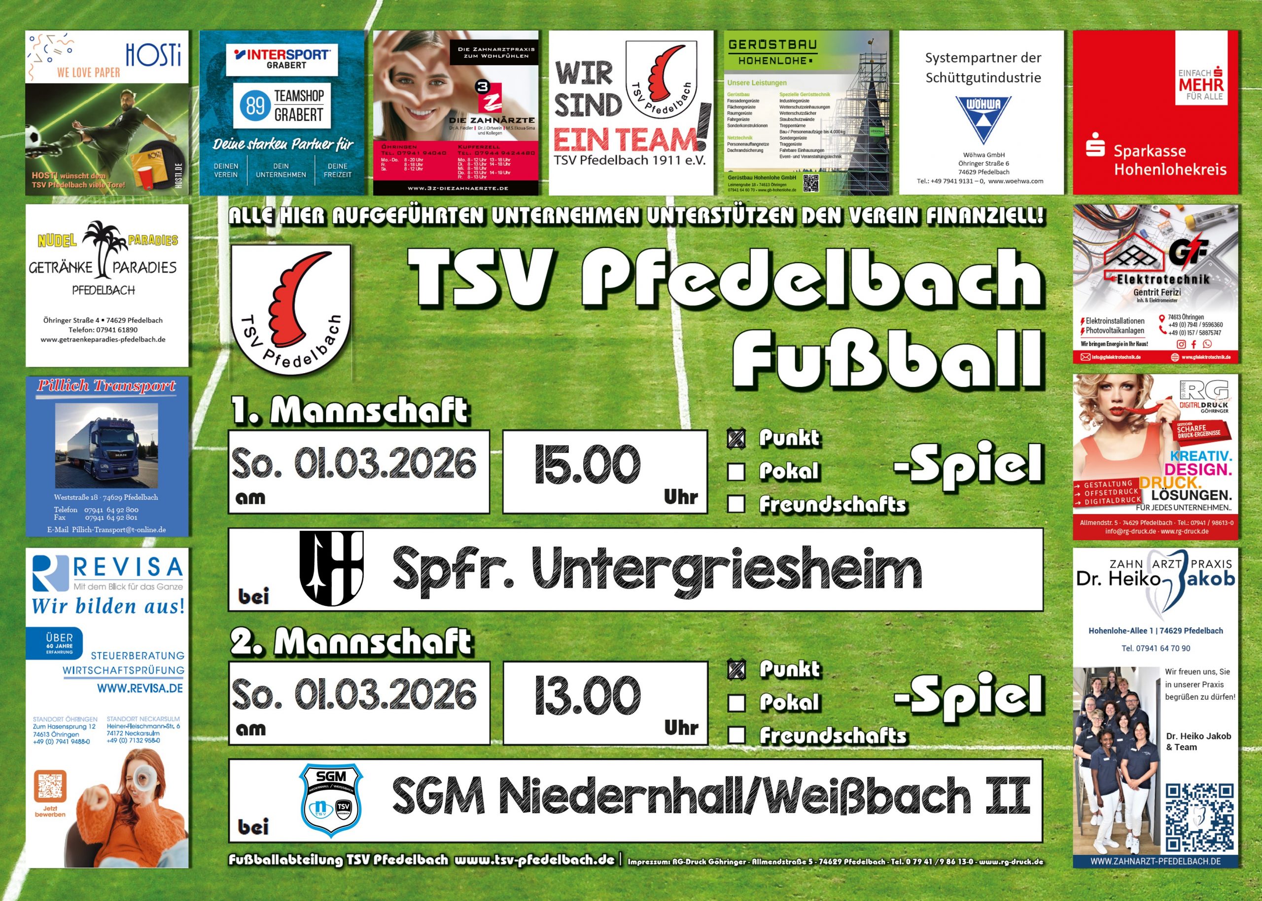 Spielbeginn 2. Mannschaft: 15.00 Uhr