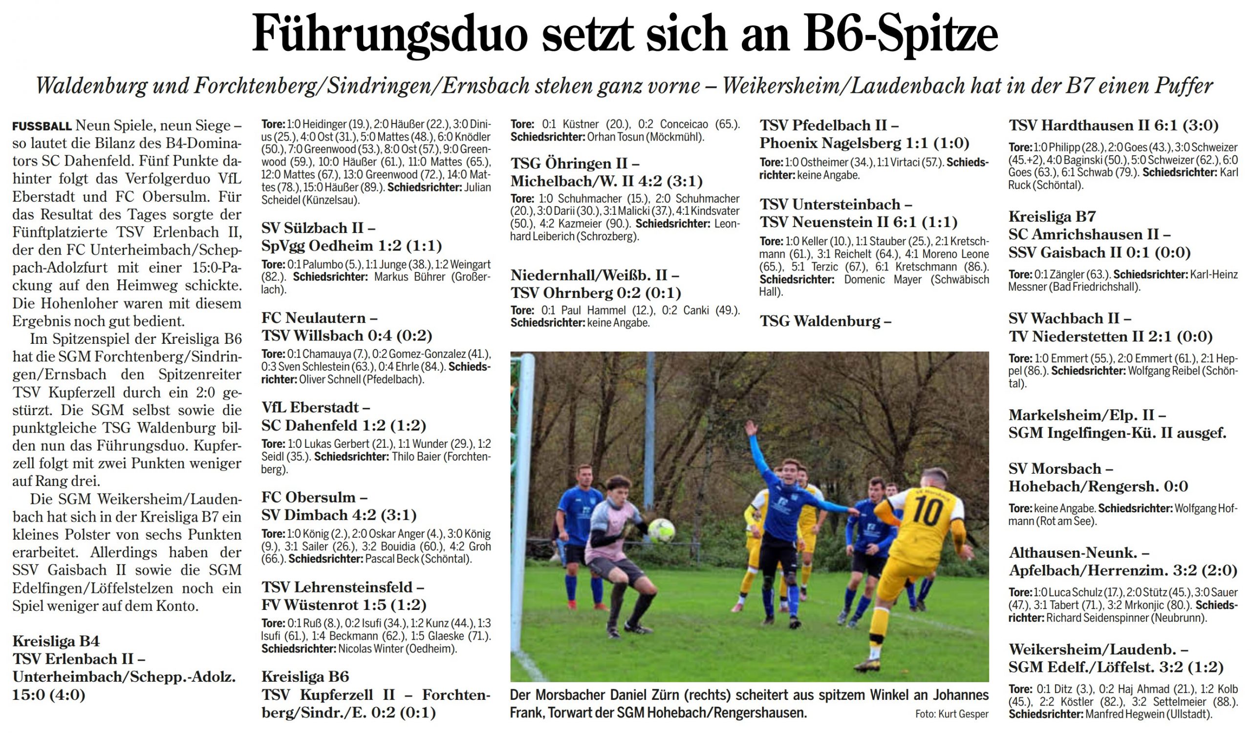 Die Ergebnisse des 10. Spieltags der Kreisliga B6 Hohenlohe: