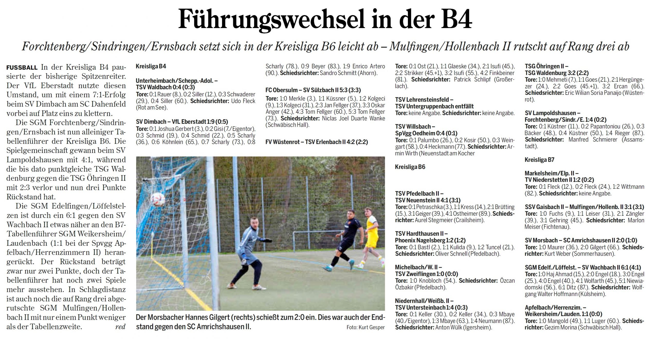 Die Ergebnisse des 21. Spieltags der Kreisliga B6 Hohenlohe: