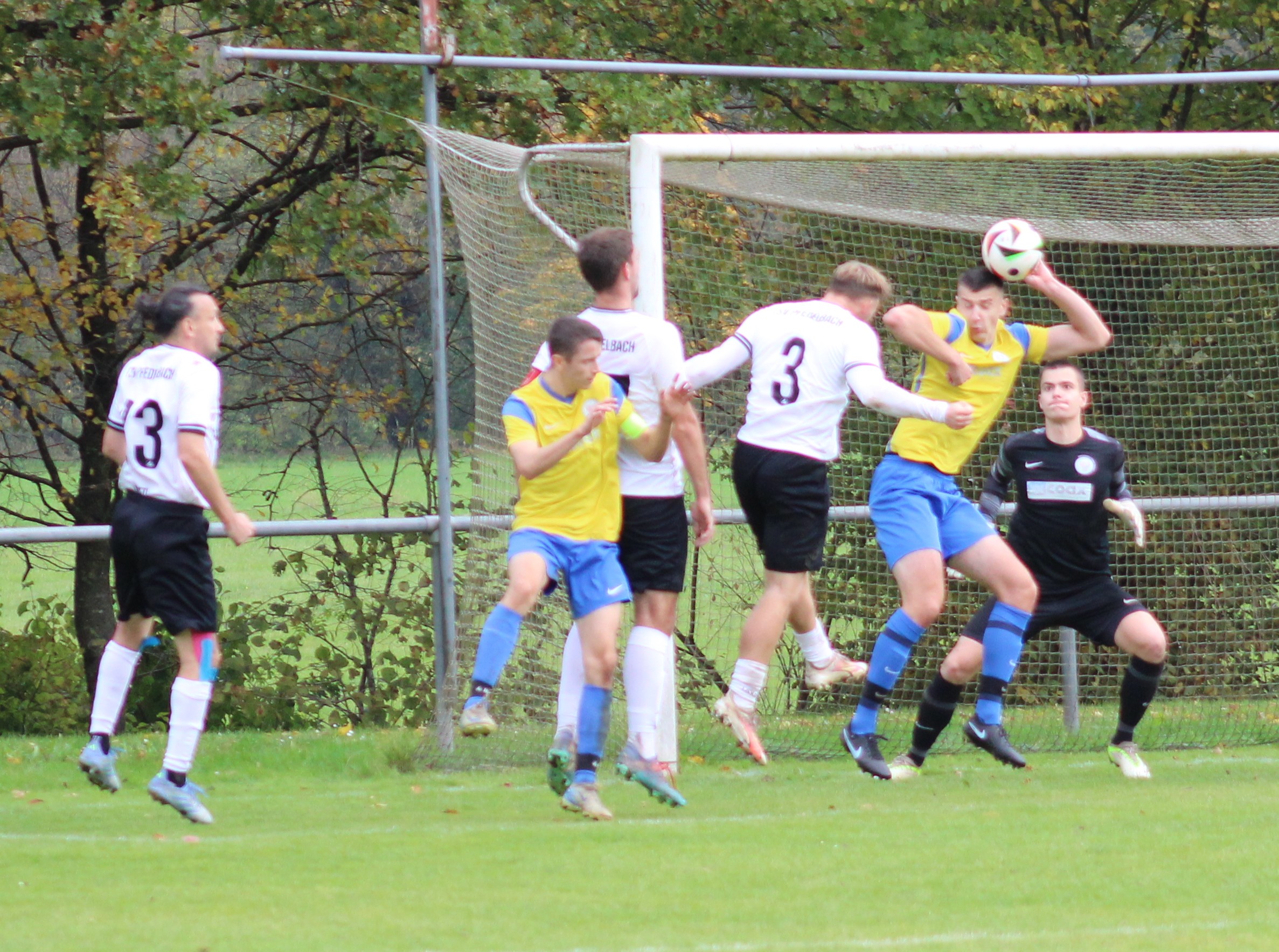 Eine Minute später hätte der Siegtreffer fallen müssen. Pfedelbach führte einen Freistoß schnell aus und Patrick Magiera spielte den Keeper aus und knallte den Ball an die Querlatte.