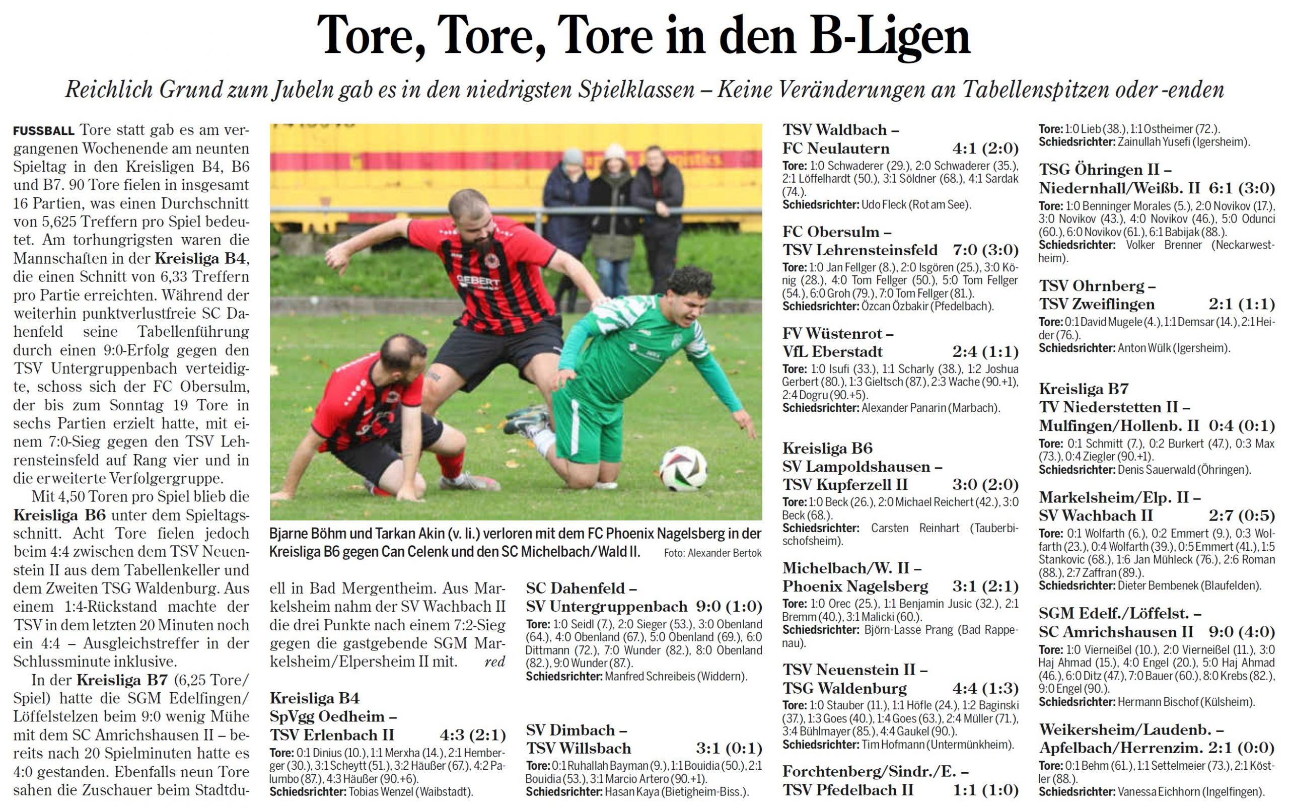 Die Ergebnisse des 9. Spieltags der Kreisliga B6 Hohenlohe: