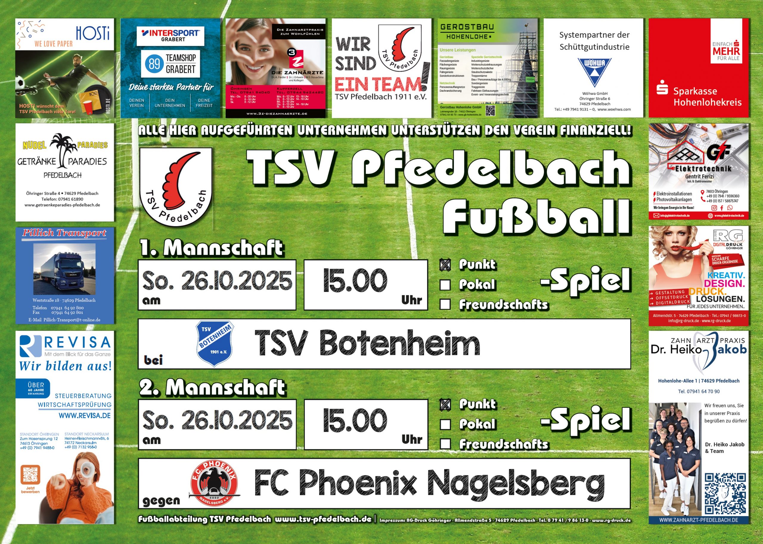 Am Sonntag, den 26. Oktober 2025 um 15.00 Uhr spielen wir mit unserer 2. Mannschaft zu Hause in der Kreisliga B6 gegen den FC Phoenix Nagelsberg.