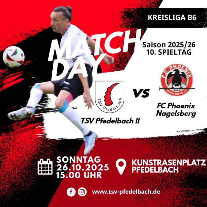 Der TSV Pfedelbach II empfängt den FC Phoenix Nagelsberg in der Kreisliga B6 Franken. Anpfiff ist um 15.00 Uhr auf dem Pfedelbacher Kunstrasenplatz.