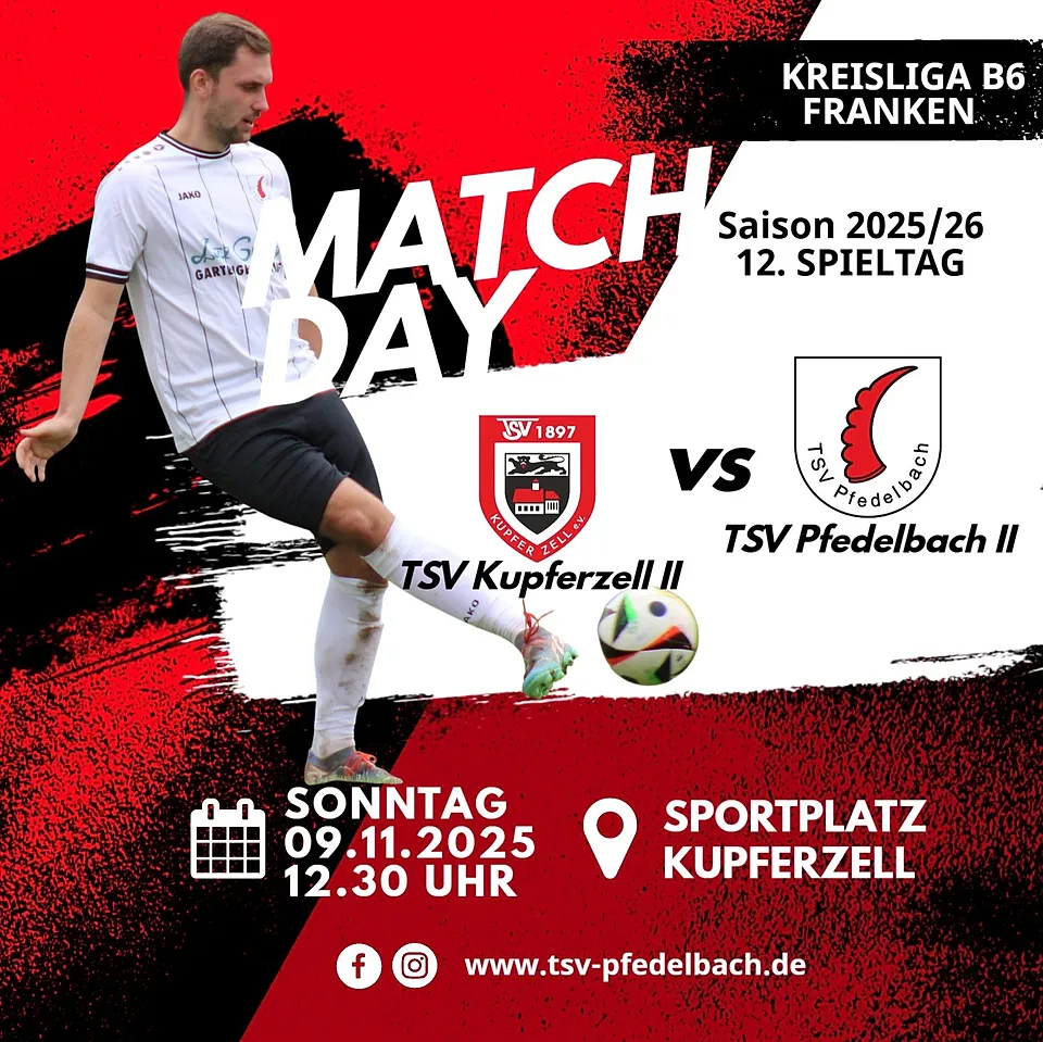 Am kommenden Sonntag, den 09.11.2025 um 12.30 Uhr gastiert unsere zweite Mannschaft beim TSV Kupferzell II. Nach zuletzt wechselhaften Ergebnissen will das Team um die Trainer Christian Martin und tobias Radzium wieder punkten und sich in der Tabelle der Kreisliga B6 weiter nach oben arbeiten.