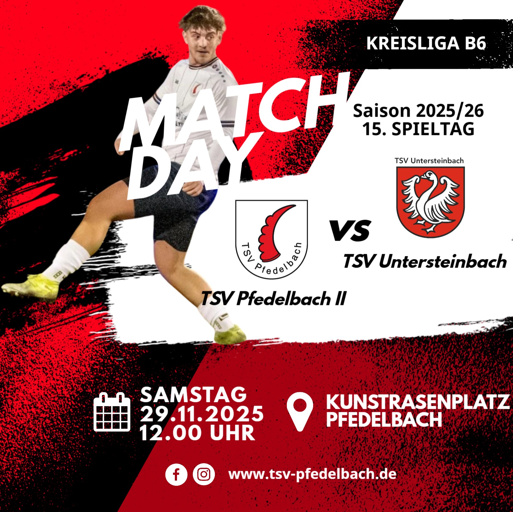 Am Samstag, den 29. November 2025 um 12.00 Uhr spielen wir mit unserer 2. Mannschaft im letzten Spiel des Jahres zu Hause im Gemeindederby in der Kreisliga B6 gegen den TSV Untersteinbach.