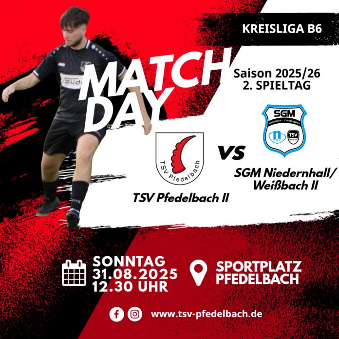 Am Sonntag, den 31. August 2025 um 12.30 Uhr spielen wir mit unserer 2. Mannschaft zu Hause in der Kreisliga B6 gegen die SGM Niedernhall/Weißbach II.