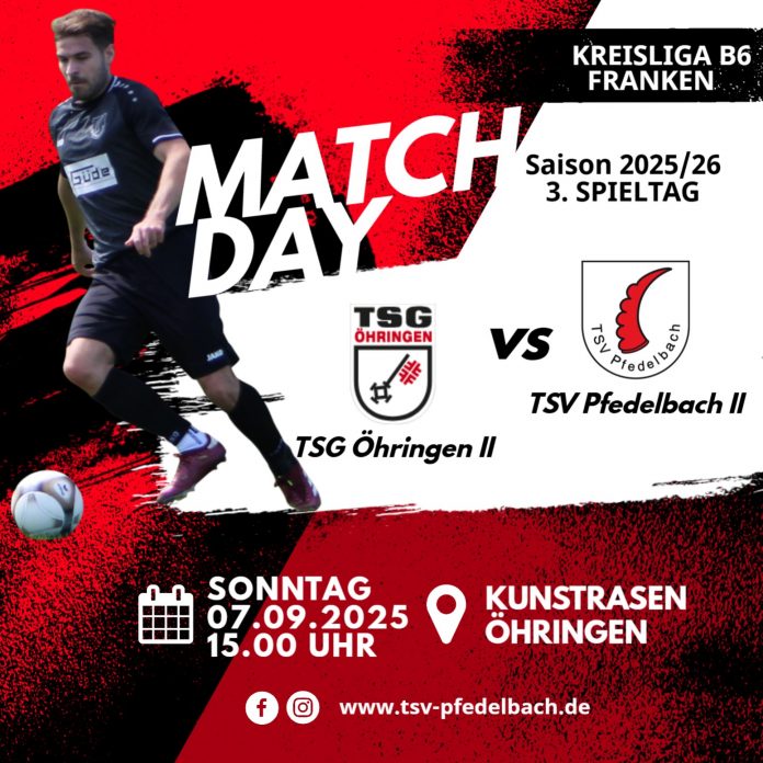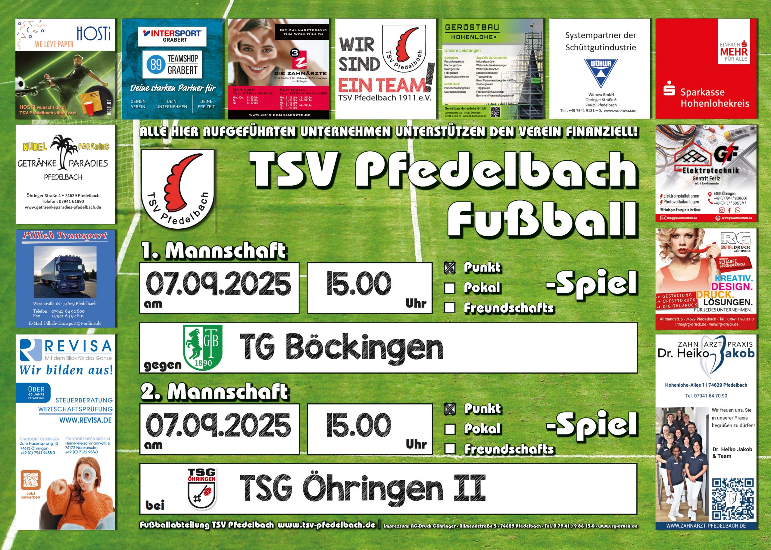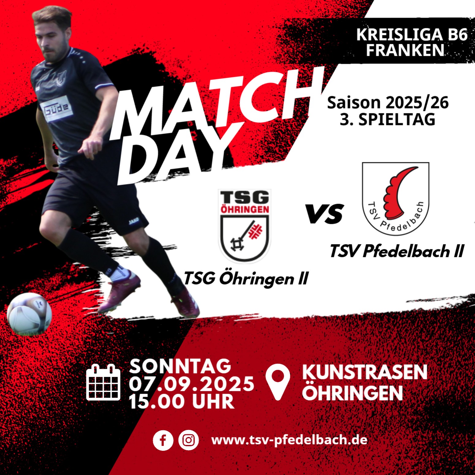 Am Sonntag, den 7. September 2025 spielt unsere 2. Mannschaft um 15.00 Uhr auswärts bei der TSG Öhringen II.