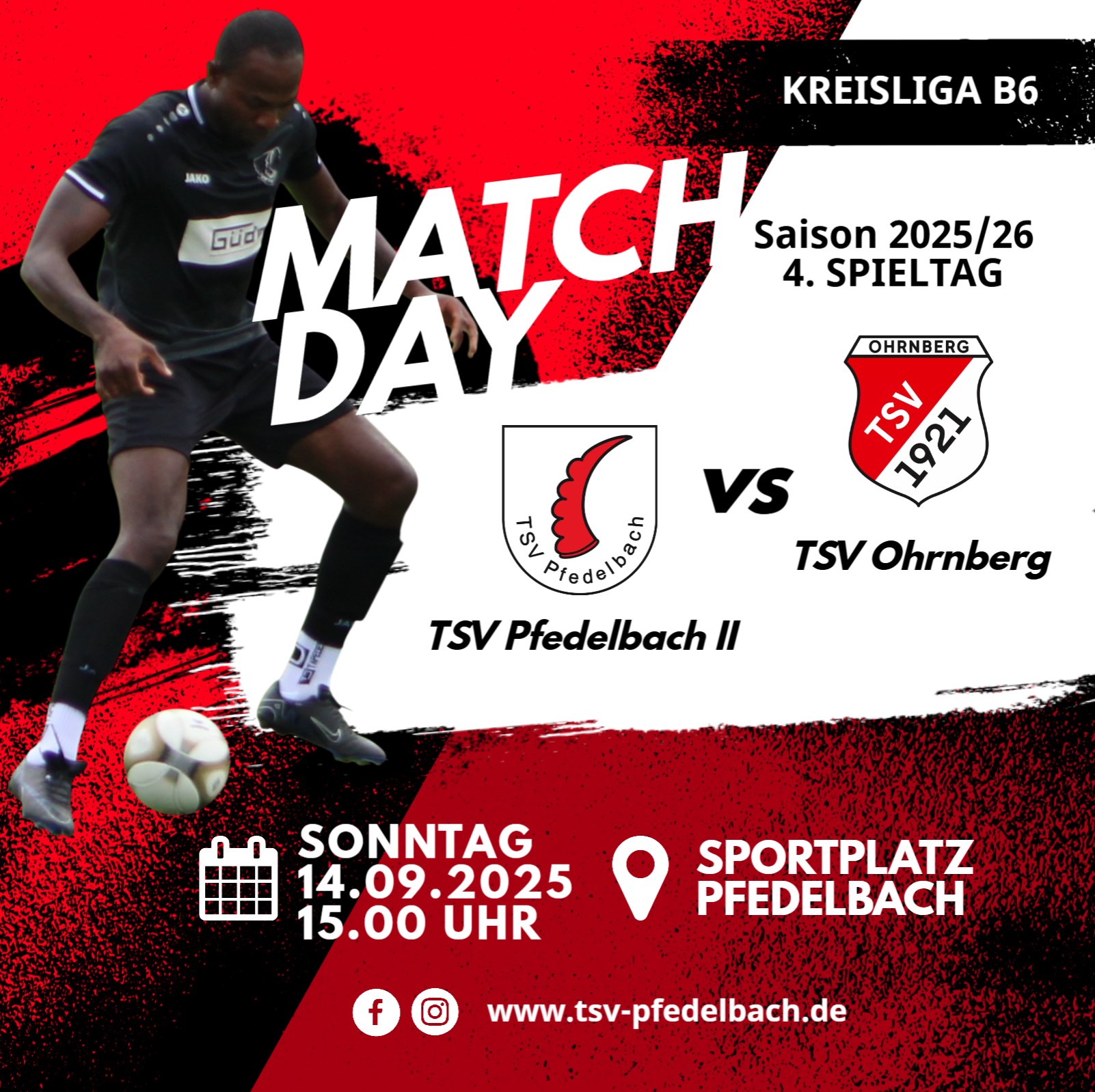 Am Sonntag, den 14. September 2025 um 15.00 Uhr spielen wir mit unserer 2. Mannschaft zu Hause in der Kreisliga B6 gegen den TSV Ohrnberg.