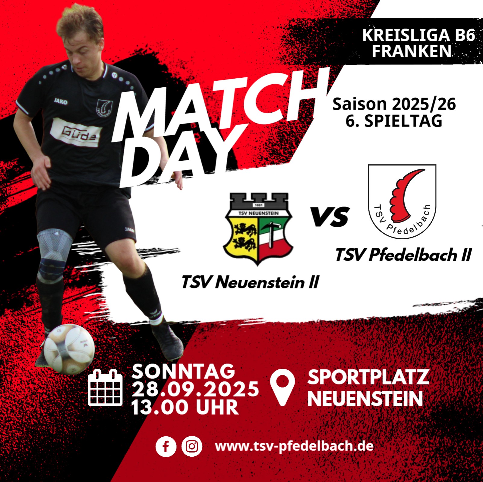 Am Sonntag, den 28. September 2025 spielt unsere 2. Mannschaft um 13.00 Uhr auswärts beim TSV Neuenstein II.