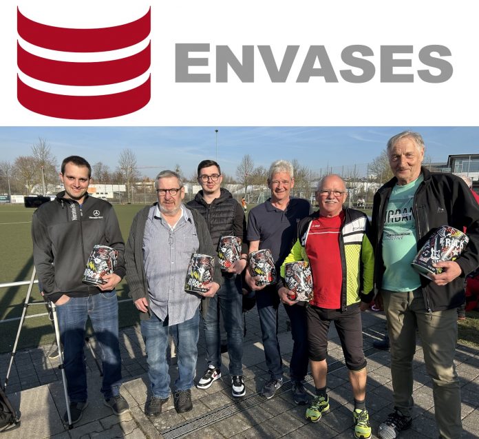 Am Sonntag, den 09.03.2025 haben wir in der Halbzeitpause des Bezirksligaspiels gegen die Aramäer Heilbronn die nächsten Bierfässer unseres Sponsors Envases Öhringen an die Pfedelbacher Zuschauer verlost. Für jedes geschossene Tor unserer 1. Mannschaft wird ein Bierfass verlost. Jeweils ein Bierfass gewonnen haben Dominik Müller, Horst Hammel, Simon Bühlmaier, Uwe Zinßer, Helmut Schmidgall und Fritz Gysin (Bild von links nach rechts). Es gab sechs Bierfässer zu gewinnen, da wir zuvor im Heimspiel gegen MassenbachHausen drei Treffer und im Auswärtsspiel in Leingarten auch drei Treffer erzielt hatten.