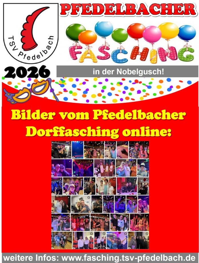 Die Bilder und Videos vom Pfedelbacher Dorffasching am 06.02.2026 sind auf unserer Facebookseite online: