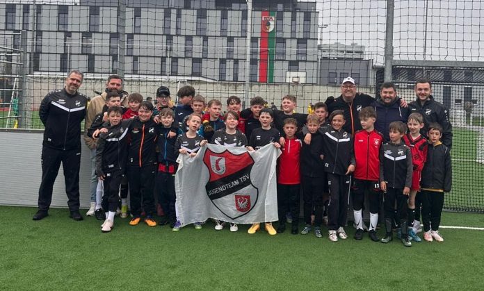 Früh aufstehen hieß es für die Spieler, Trainer, Eltern und Geschwister der E-Jugend des Jugendteams TSV. Ziel war das Nachwuchsleitungszentrum des FC Augsburg. Dort durften die Jungs gemeinsam mit den Kids des FCA ein Training absolvieren. Nach dem Aufwärmen wurden sechs gemischte Teams gebildet und auf Kleinspielfelder ein spannendes Turnier jeder gegen jeden ausgetragen. Für unsere Jungs ein einmaliges Erlebnis gemeinsam mit dem Nachwuchs des Bundesligisten zu spielen. Nach dem Mittagessen in einem bekannten Schnellrestaurant ging es dann noch in eine Trampolinhalle. Hier konnten sich alle noch einmal austoben, bevor es zurück nach Pfedelbach ging.