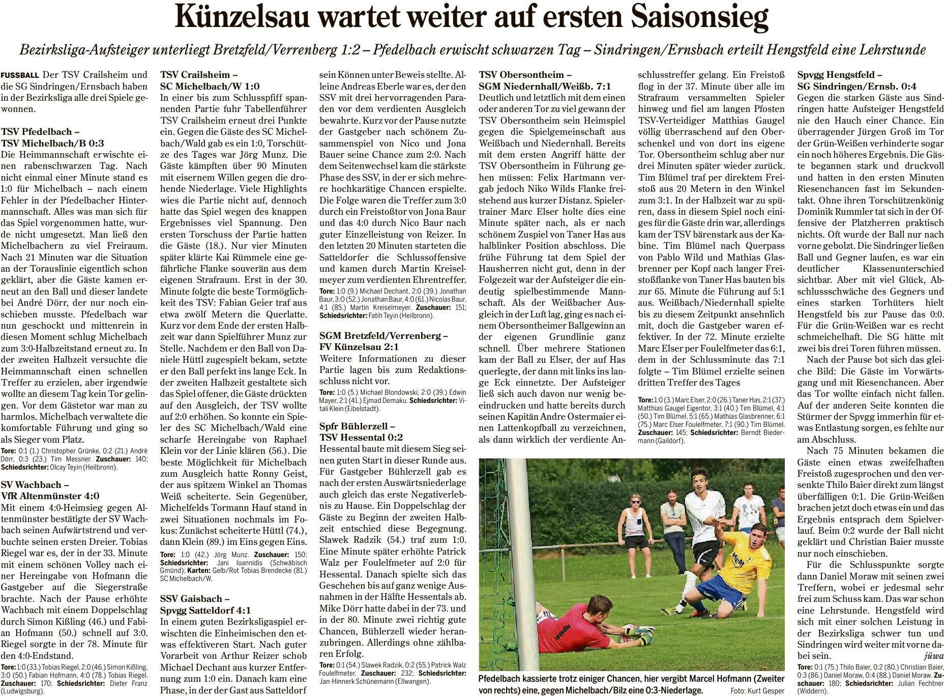 Die SG mußte am Wochenende ein herbe 1:7 Niederlage gegen den TSV Obersontheim einstecken. Wie unser TSV konnte Niedernhall Weißbach bisher ein Spiel gewinnen. Pfedelbach hat nach der miserablen Vorstellung gegen Michelbach/Bilz wieder einiges gut zu machen.