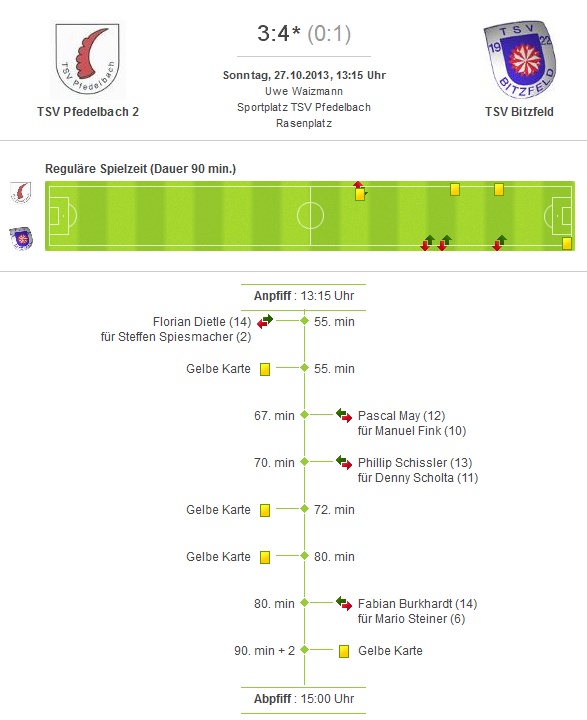TSV Pfedelbach II – TSV Bitzfeld 3:4 (0:1)
