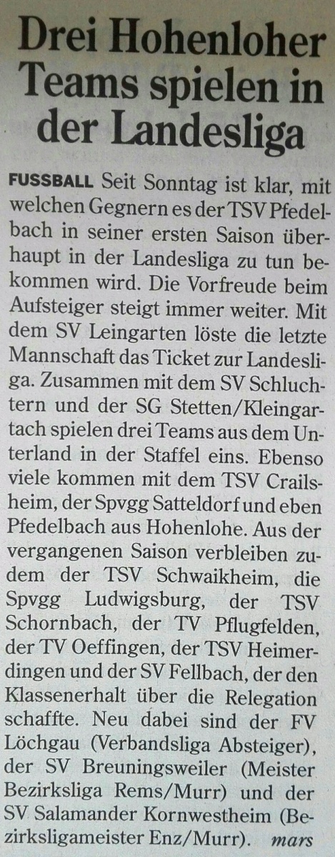 Somit stehen nun die Mannschaften der kommenden Landesliga Saison fest.