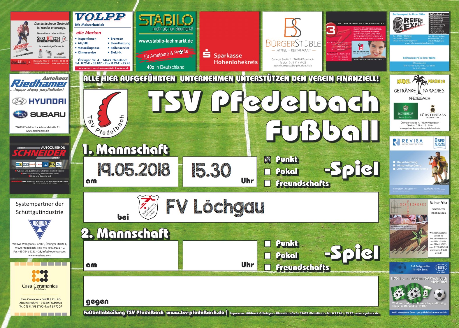 Am Samstag, den 19. Mai 2018 spielen wir auswärts beim FV Löchgau im Landkreis Ludwigsburg.
