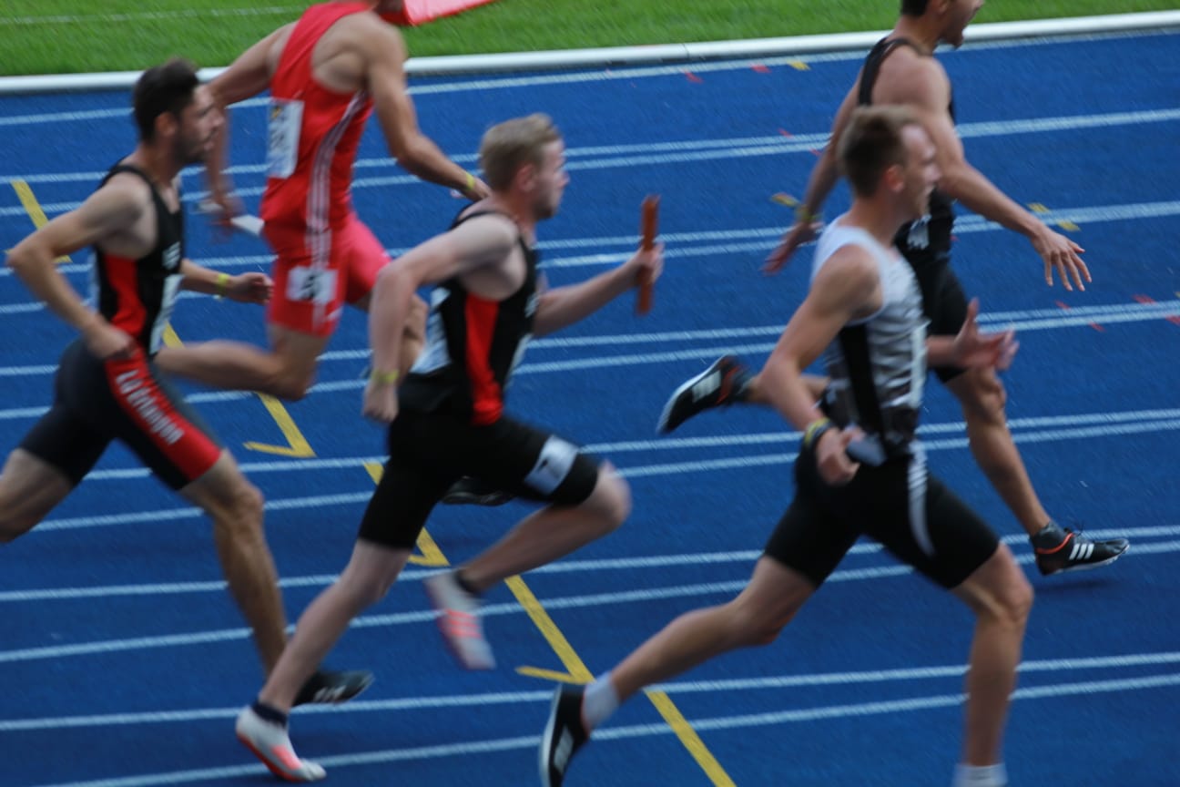 Foto 1: Staffelübergabe an den Schlussläufer Alexander Weiß (Bildmitte)