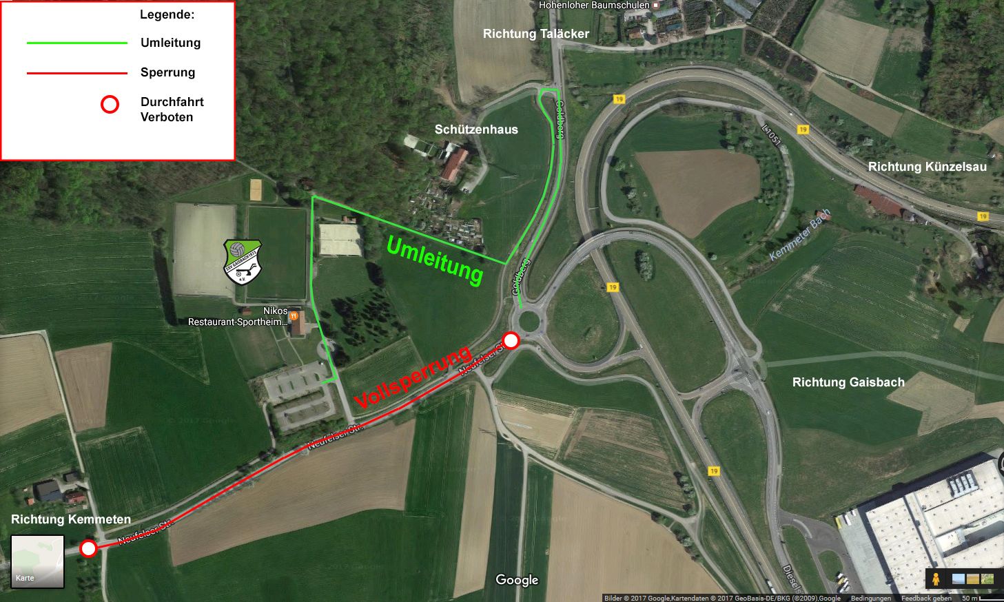 Zum Sportgelände des SSV Gaisbach gibt es momentan eine Umleitung. Bitte diese bei der Anfahrt beachten: