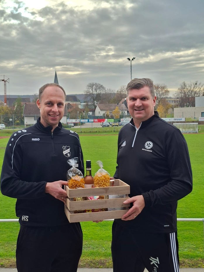 Zum Abschluss überreichten die Trainer dem Referenten als kleines Dankeschön einen Präsentkorb.