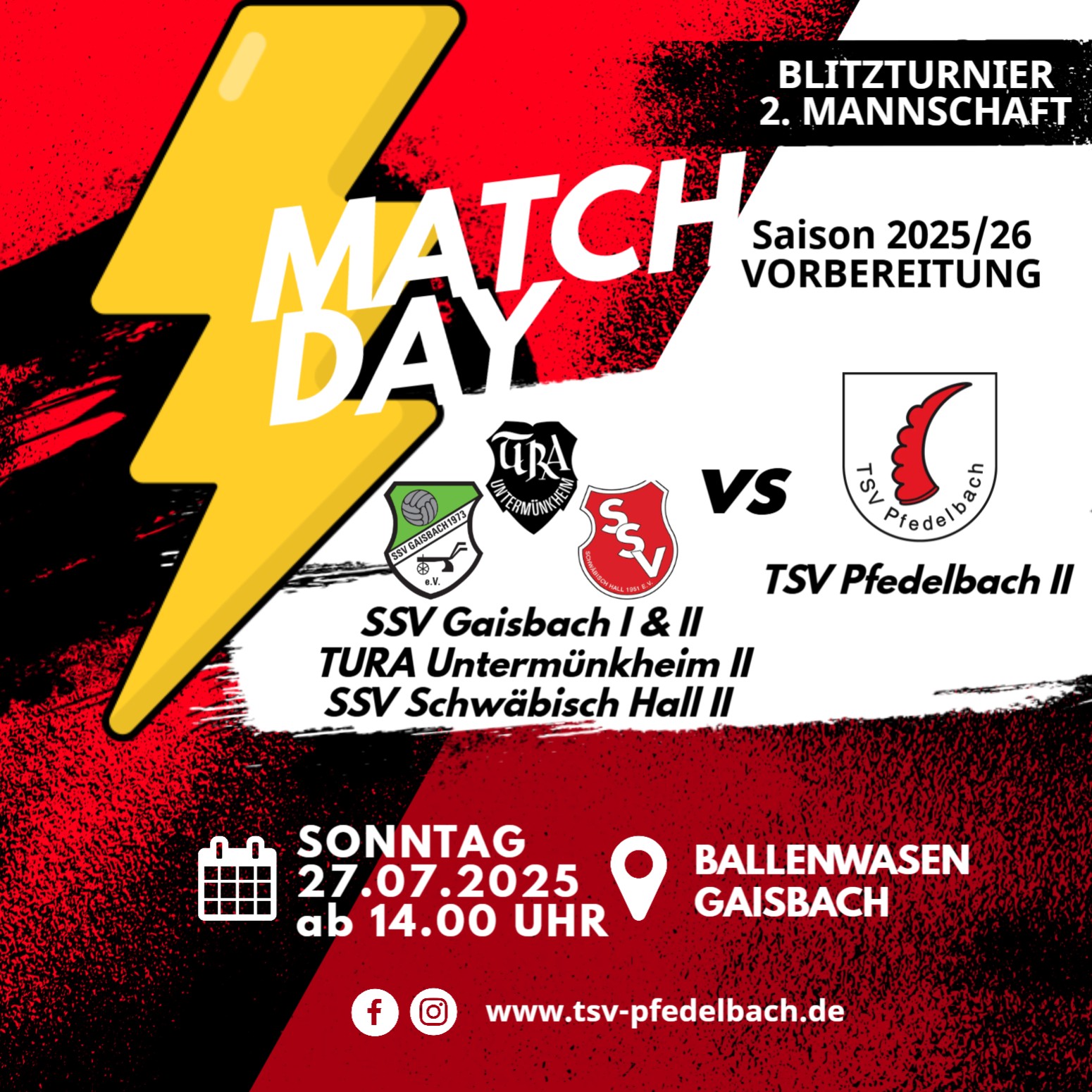 Unsere 2. Mannschaft nimmt am Sonntag, den 27.07.2025 ab 14:00 Uhr am Blitzturnier des SSV Gaisbach teil.