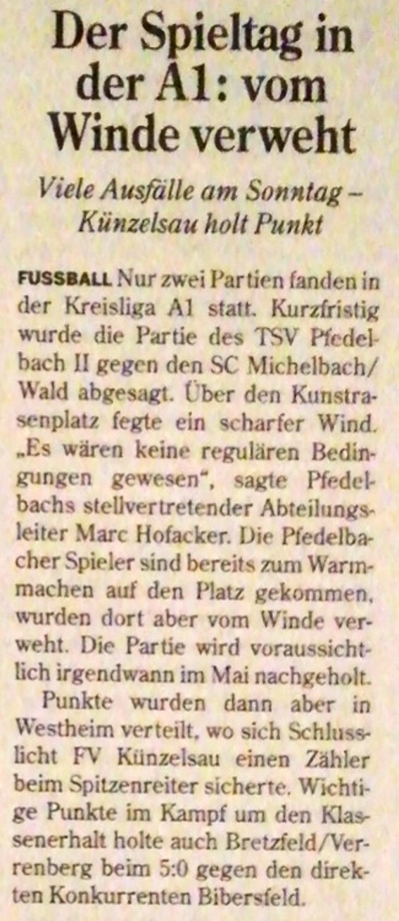 Die Pfedelbacher Spieler sind zum Warmmachen auf den Platz gekommen, wurden dort aber vom Winde verweht -> siehe Bild.