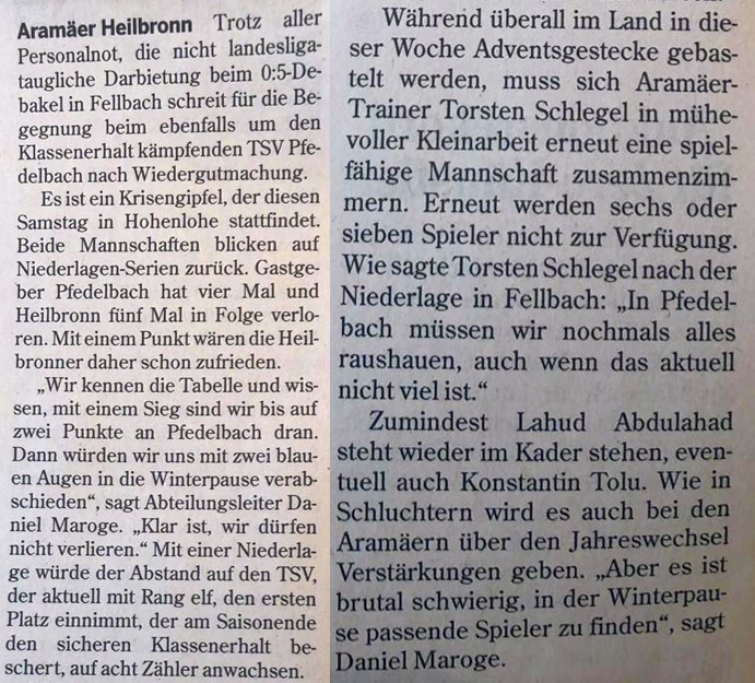 Vielen Dank an dieser Stelle an Torsten Schlegel von den Aramäern Heilbronn, der die Fragen der Sportplatzblättle-Redaktion beantwortet hat.