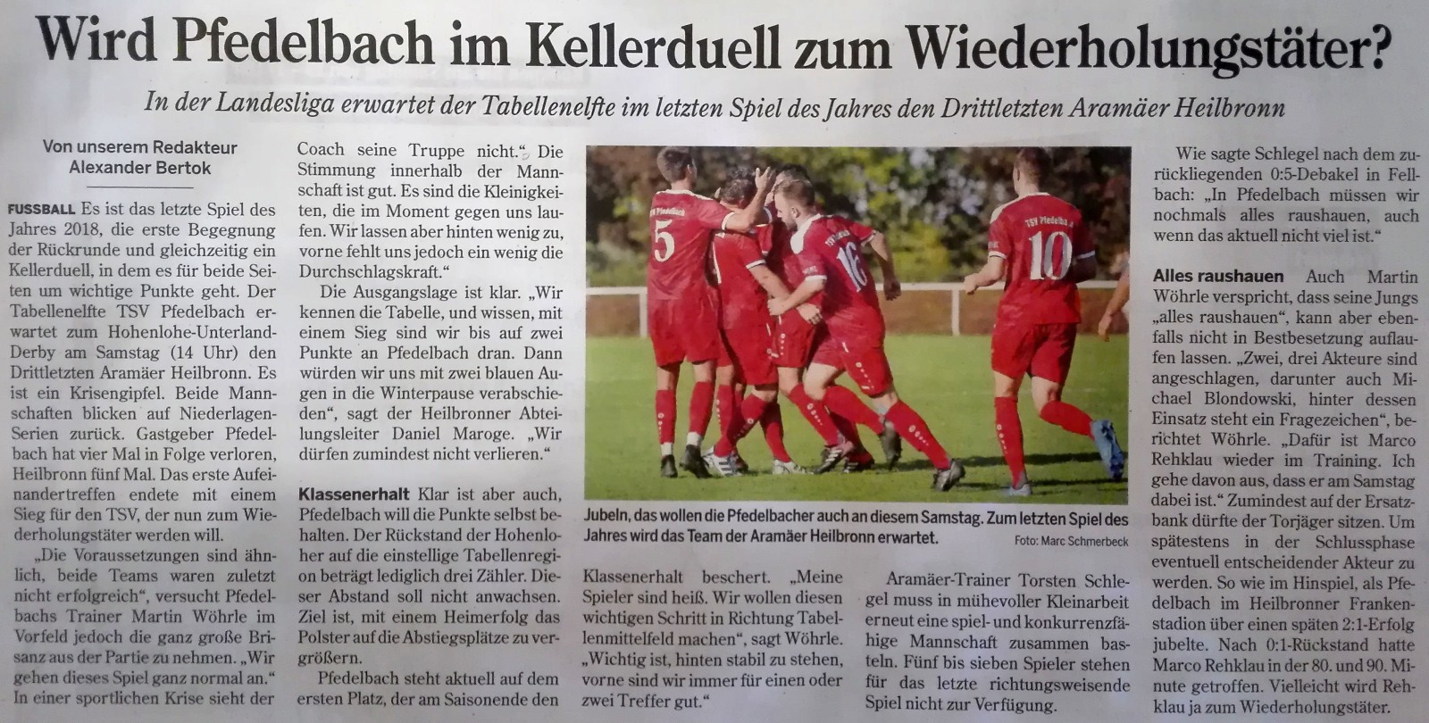 Vorbericht aus der Heilbronner Stimme vom 01.12.2018 (zum Vergrößern auf das Bild klicken):