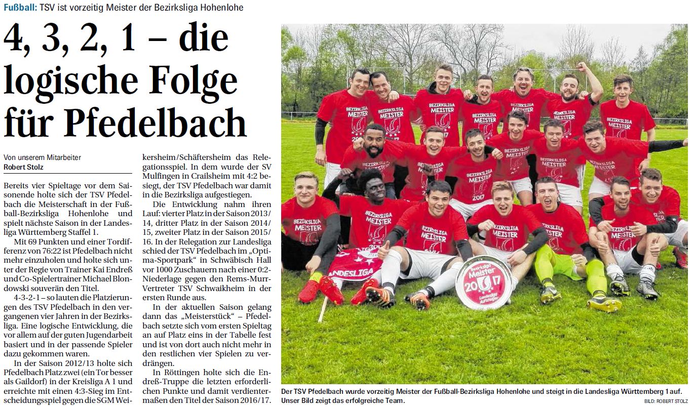 Bericht aus der Hohenloher Zeitung vom 08.05.2017: