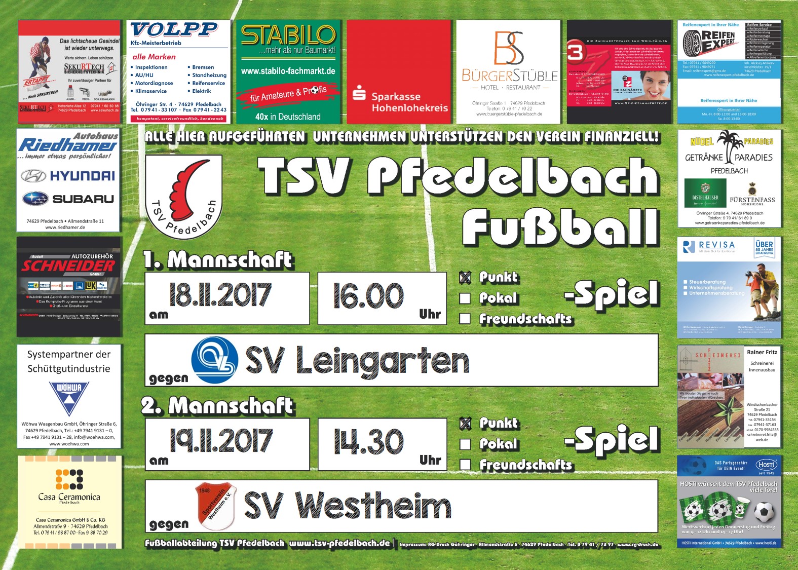 zum heutigen Landesliga-Heimspiel gegen den SV Leingarten möchte ich Sie herzlich in Pfedelbach begrüßen.