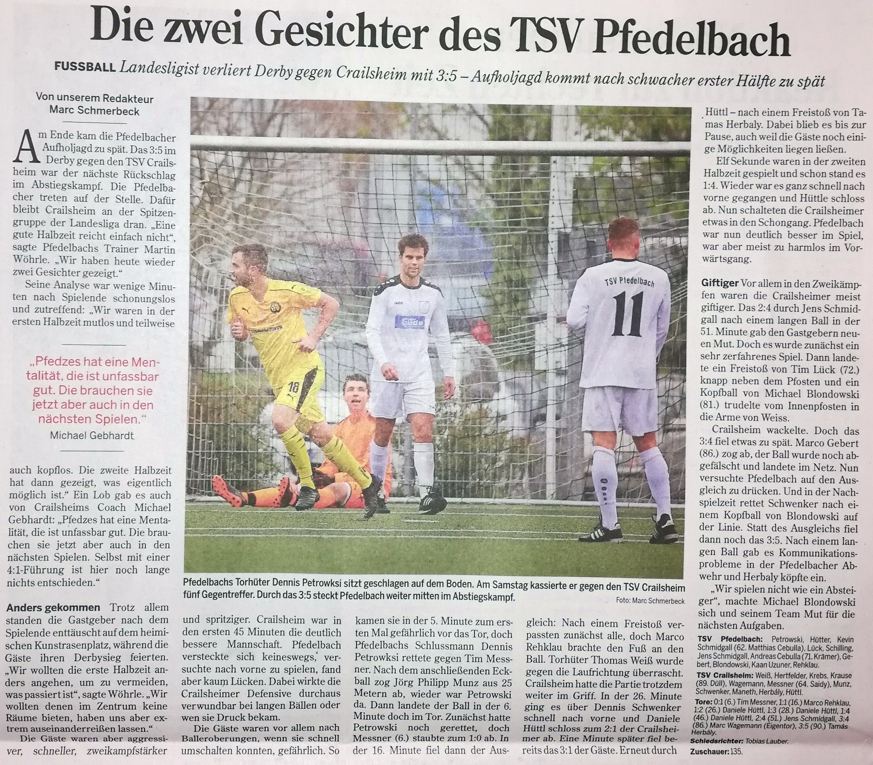 TSV Pfedelbach – TSV Crailsheim 3:5 (1:3)