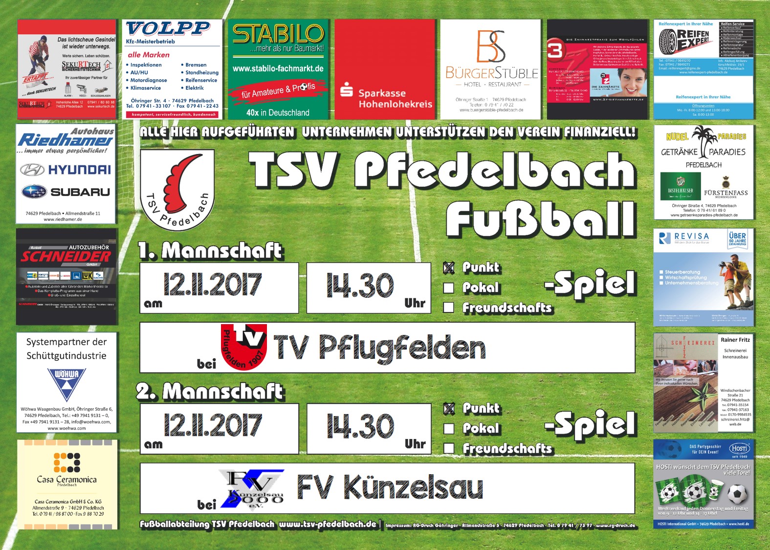 Am Sonntag, den 12. November 2017 spielen wir auswärts beim TV Pflugfelden im Enz-Murr-Kreis.